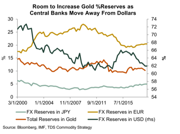 Kultavarannoilla on vielä paljon kasvuvaraa, kullan ollessa noin 10% valtioiden varoista.